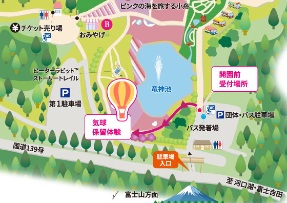 富士芝桜まつり入園料金を購入し、気球体験エリアにお進みください。
